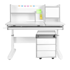 Растущая парта Anatomica Premium Granda Plus отлично подойдет для ребенка ростом от 110 см. В ней есть все необходимое, чтобы использовать рабочее место с максимальной пользой: в выдвижной пенал - органайзер можно сложить все канцелярские принадлежности. Парта оснащена надстройкой в которой предусмотрены: полка для для хранения книг и тетрадей, металлическая стенка с пеналами, магнитными держателями, а так же удобный, вместительный ящик. Антибликовое покрытие защищает глаза ребенка от усталости и отражений света, а сама столешница надежно защищена от повреждений. Закругленные края исключают возможность ранения ребенка. Угол наклона столешницы регулируется от 0 до 60 градусов и позволяет заниматься как уроками, так чтением и рисованием (парту можно использовать как мольберт), а также не только сидя, но и стоя, что очень полезно для осанки. Парте не страшны и любые неровности стола, на этот случай есть регулируемые подпятники, с помощью которых можно нивелировать неровности пола. Для удобного перемещения парты по комнате на задней части ножек есть специальные большие колеса, поэтому с перемещением парты справится даже ребенок.